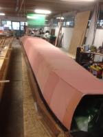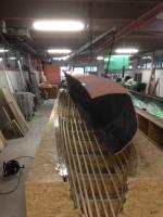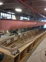 In fondo si tratta di due sole pelli. Un pò di bolle mi son scappate e più o meno riparate quindi unito utilizzando spine in legno sulla famosa flangia bordo scafo. Non prima di aver posizionato ordinate e longheroni. Questi ultimi non previsti mai per me quasi più importanti delle ordinate. Per aumentare ancor più la rigidità laterale o realizzato pure un parolone a cavallo dell'attacco della trave di prua.