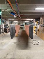 senza le pelli esterne (2 da 300gr, 2 da 200) sono 140kg ognuno (pesati sommando due dinamometri) grazie dei complimenti ma termoformare il pvc su dei listelli non è il massimo della precisione e qualche gobba c'è, specie sul primo scafo. Anche perché lo spigolo scafo coperta non è facilissimo da realizzare. In effetti ora ho il problema di avviare perfettamente le linee prima delle pelli esterne, cosa difficilina e sarei tanto tentato di trovare un aiuto professionale. Considerandoi anche il fatto che per il fairing bisogna essere in due. So che esistono squadre di specialisti che si spostano tra i cantieri, se quancuno ne conosce sarei felice di contattarli. Il programma iniziale prevedeva di passare tutto ad un cantiere ma temo dei prezzacci (anche perché in quel caso vorrebbe fare anche le pelli) Male che vada posso sempre fare un bel cat