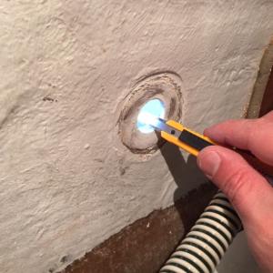 Ho tagliato i vecchi passascafi dall'esterno con un piccolo flessibile e disco lamellare. Tolto prese e passascafi dall'interno.