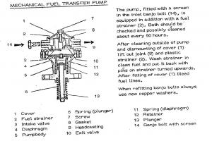 Credo di avere lo stesso problema con un Farymann R30. Livello olio al limite della capienza del basamento (3L). L'olio vecchio era molto liquido quindi sospetto trafilamento di gasolio dalla pompa AC. Il sintomo è stato il seguente: scoppio forte dal motore e fumo nero dallo scarico, poi riprende a funzionare regolarmente e dopo un certo periodo l'anomalia si ripete. Ogni volta che si verifica, trovo olio dappertutto nel vano motore. Dove hai trovato la pompa AC? Hai il codice del ricambio? Vedi foto ripresa dal manuale del mio Farymann...
