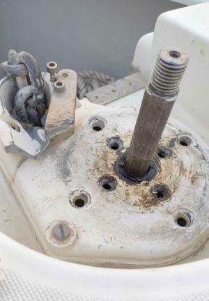 Sono arrivato al punto illustrato dalle due foto che allego. Non riesco a sfilare l'albero dalla piastra di appoggio in coperta. O bisogna svitare le quattro brugole indicate? In questo caso dovrò segare una chiave a brugola, con quella standard non c'è spazio per lavorarci.