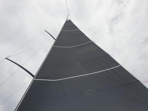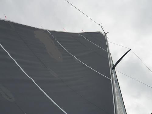 La discussione con il mio amico è accademica, non finalizzata alla modifica della vela che credo difficilmente recuperabile. La mia idea è che l'uscita della vela sia troppo piatta e che magari nell'assemblare le tasche delle stecche si sia creata qualche tensione, il mio amico ritiene invece che manchi giro d'albero.