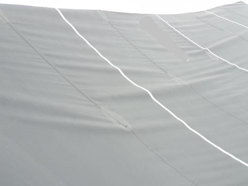 allego le foto di una randa di amici che presenta chiaramente dei difetti. Non sono interessato a colpevolizzare il velaio e quindi ho cancellato il numero velico, mi interessa il parere di voi esperti sui motivi delle pieghe. La randa è troppo magra in entrata e quindi manca di giro d'albero o è troppo piatta in uscita? La vela è di quest'anno e ha fatto forse 15 uscite e mai con troppo vento.