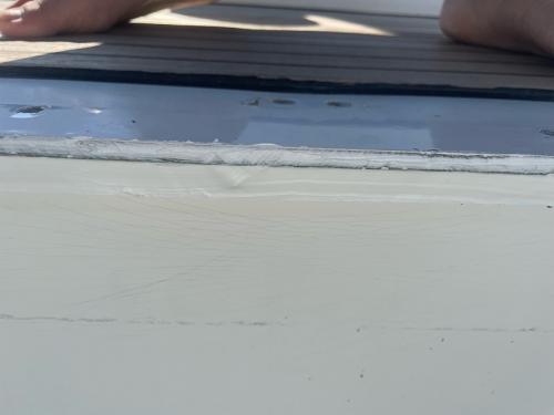 oggi ho lavato l'interfaccia scafo coperta e purtroppo è entrata ancora acqua, sembra che il sigillante ormai non faccia più tenuta, entra acqua tra la coperta e il sigillante, forse hanno aspettato troppo prima di appoggiare la coperta in cantiere oppure l'acqua che entrava ha trovato via e piano piano ha distaccato il sigillante.