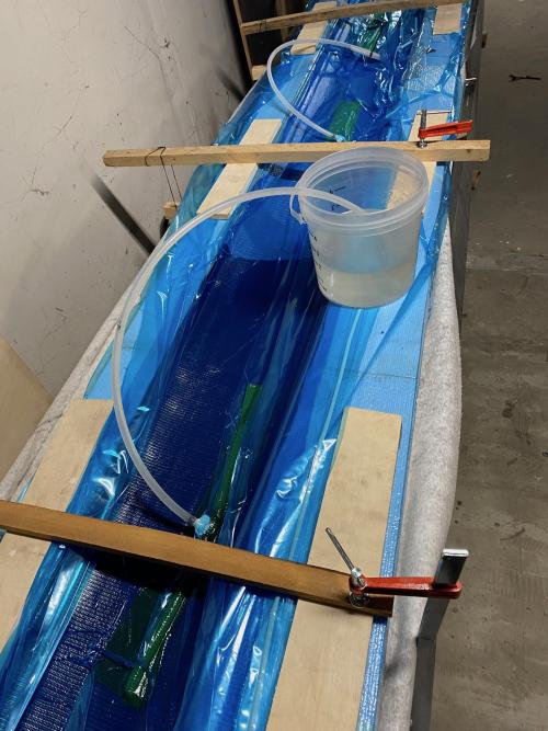 Prove di vuoto, il film pur molto abbondante tira e flette il merdene dello stampo, imperativo dotarsi di morsetti seri per bloccarlo al tavolo.