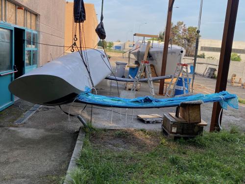 Complice il cattivo tempo ho ripreso in mano il tema albero, forse qualcuno ricorda che ne avevo già realizzato uno in due metà di pvc pieno, lasciando solo un passaggio per le drizze, risultato 140 Kg che una volta incollare e belin le due metà si va a sfiorare i 180, davvero troppi. Lo si nota ai piedi del cavalletti, se qualcuno è interessato si faccia avanti