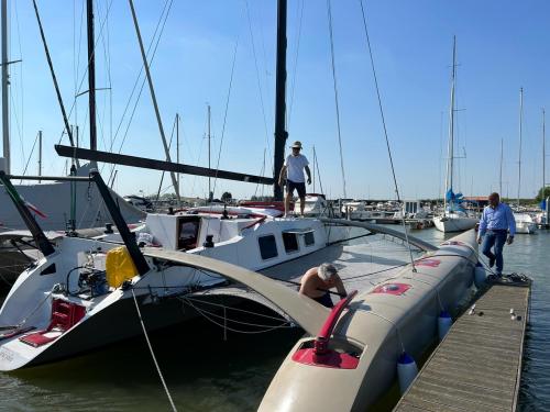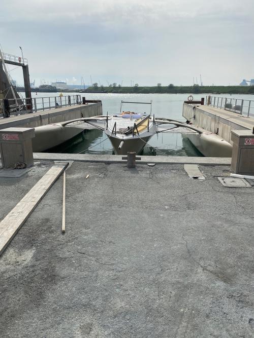 Hai valutato che puoi chiudere un solo lato e dunque diminuire sensibilmente la larghezza mantenendo anche un timone in acqua e molta più stabilità ?? Per entrare coi Corsair a S.Margherita di Caorle per le regate, nel canale chiudevamo uno scafo per passare le porte vinciane e per entrare all'ormeggio.