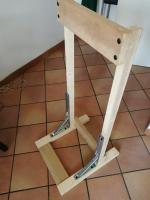 Dato che ho più dimestichezza con l'acciaio che col legno, il mio l'ho realizzato con uno spezzone di tubolare quadro 40x40 che mi avanzava, semplice, robusto e al costo .
