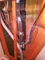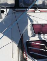 e fascettate allo scafo , la paratia maestra anche resinata alla coperta( non alla tuga), le parti basse dei mobili resinate e fascettate anch'esse, ottime la zona di rinforzo che sostiene il puntello dell'albero poggiato in coperta e robusta l'omega metallica dove sono rinviate le lande. Meno bella l'unione scafo coperta con collante strutturale falchetta in alluminio e viti autofilettanti( le avrei preferite passanti con dado+ fascettatura ovviamente) Comunque barca asciutta all'interno ( verificato l'accoppiamento scafo coperta anche il punti nascosti) e senza tracce di vecchi trafilaggi ( anzi polvere di residui di lavorazione),segno che il tipo di accoppiamento, collaudato da 9 anni di uso, e' comunque valido.