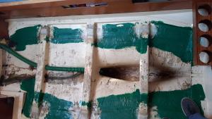 La barca ha la deriva imbullonata allo scafo al di sotto dei madieri. Il pre-precedente proprietario aveva probabilmente preso una insaccata (o inseccata) che aveva lesionato i madieri agli estremi ma poco prima l'aggancio allo scafo.