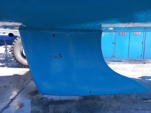 dopo un mese in acqua , avevo già ruggine quasi ovunque sulla pinna e dopo una sola stagione , si staccavano proprio le scaglie della ruggine . la stagione successiva ho applicato due zinchi da 60 mm nel modo che ho appena descritto . a fine stagione gli zinchi erano spariti ma niente ruggine . quando mi sarò rotto le scatole di cambiare zinchi , sbulberò un'altra volta e toglierò quelle maledette cassaforme di inox .