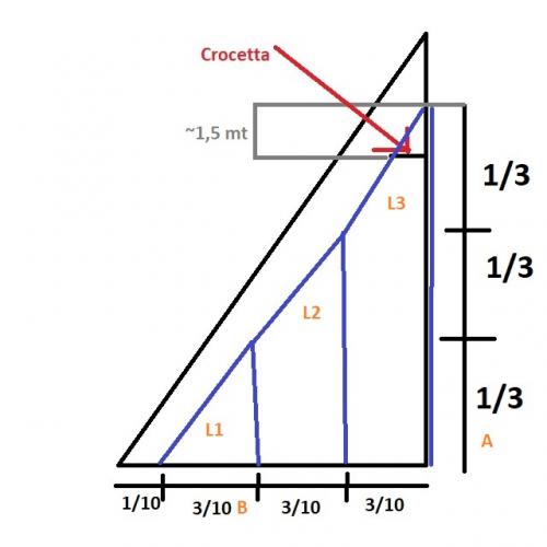 Per quanto riguarda l'albero, ho preso in considerazione la lunghezza da appena sopra il boma fino ad un'altezza di circa 1,5 mt sopra le crocette.