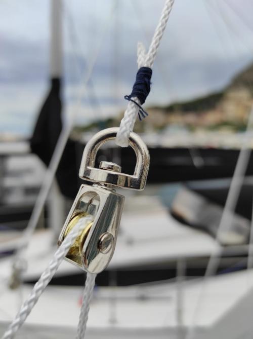 Con lo spago dovrete fare una impiombatura ad occhio su di un lato delle cimette L2 e L3 legando i bozzelli alla cima.