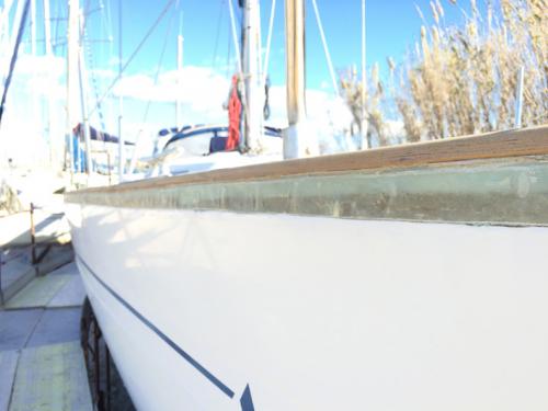 Praticamente il cantiere costruttore, per creare una buona base di appoggio per la coperta, aveva rigirato tutto intorno la resinatura dello