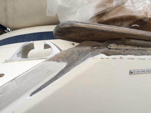 Poi, il fatto che durante questi lavori abbiamo scoperto che a poppa il nostro capodibanda in teck aveva delle sporgenze ad altro rischio di facile rottura, questo è tutto un'altro discorso ma con mia moglie alla fine abbiamo risolto anche questo autocostruendoci dei rinforzi in acciaio inox.