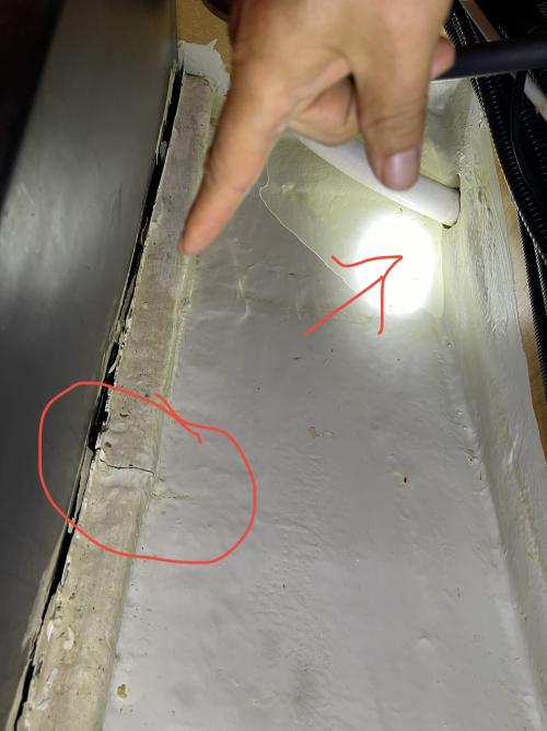 Kavokcinque: no, la crepa indicata col dito nella prima foto non è niente di grave, quella blocca il serbatoio e non arriva all’opera viva, è superficiale e non è niente di cui preoccuparsi, il serbatoio si è scollato e la schiuma che lo blocca ha solo una crepa, nulla di che; quella crepa è solo nel listello che blocca il serbatoio del gasolio, non perde e non arriva sotto, all’opera viva. la avevo cerchiata ed indicata col dito per chiedere un parere al perito, che subito la ha esclusa come possibile cosa importante, dicendo che non è niente di che. Il sub ha ispezionato da sotto tutto lo scafo senza trovare nessuna traccia di crepe od urti alla chiglia ed altro
