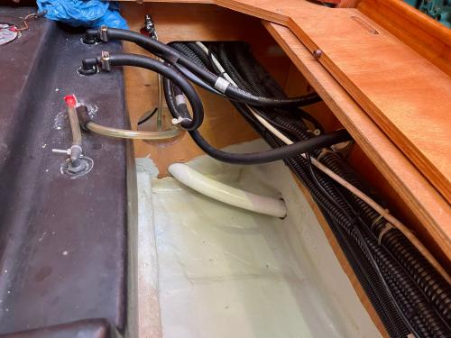 ho tappato col butile il foro della sentina dopo la pompa ed i prigionieri e le sentine verso prua rimangono asciutte.