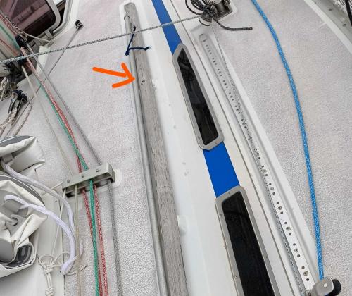 mah, noi a suo tempo abbiamo fatto in questo modo: - dopo aver tolto il tientibene abbiamo allargato di molto il foro incriminato scavando anche nel legno di rinforzo annegato - scavato ulteriormente sui lati del legno, in modo da creare un'ampolla - spennellato di epossidica le pareti e poi riempito il tutto con epossidica addensata - una volta che tutto si è asciugato, e dopo aver spianato il rattoppo, fatto un preforo del diametro del nocciolo della vite di fissaggio un paio di cose, con l'epossidica occhio alle temperature, poi, se riempi solo il foro esistente mi sa che dopo poco il problema si ripresenta, invece, già che ci sei, dai un occhio ai pezzetti di gelcoat che sono saltati via o stanno saltando (quelli in primo piano nella foto), senza gelcoat la vetroresina è permeabile