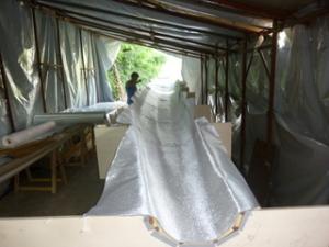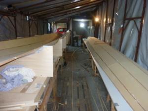 gli stampi delle semiordinate di poppa e prua (dove vengono incernierate el traverse pieghevoli)